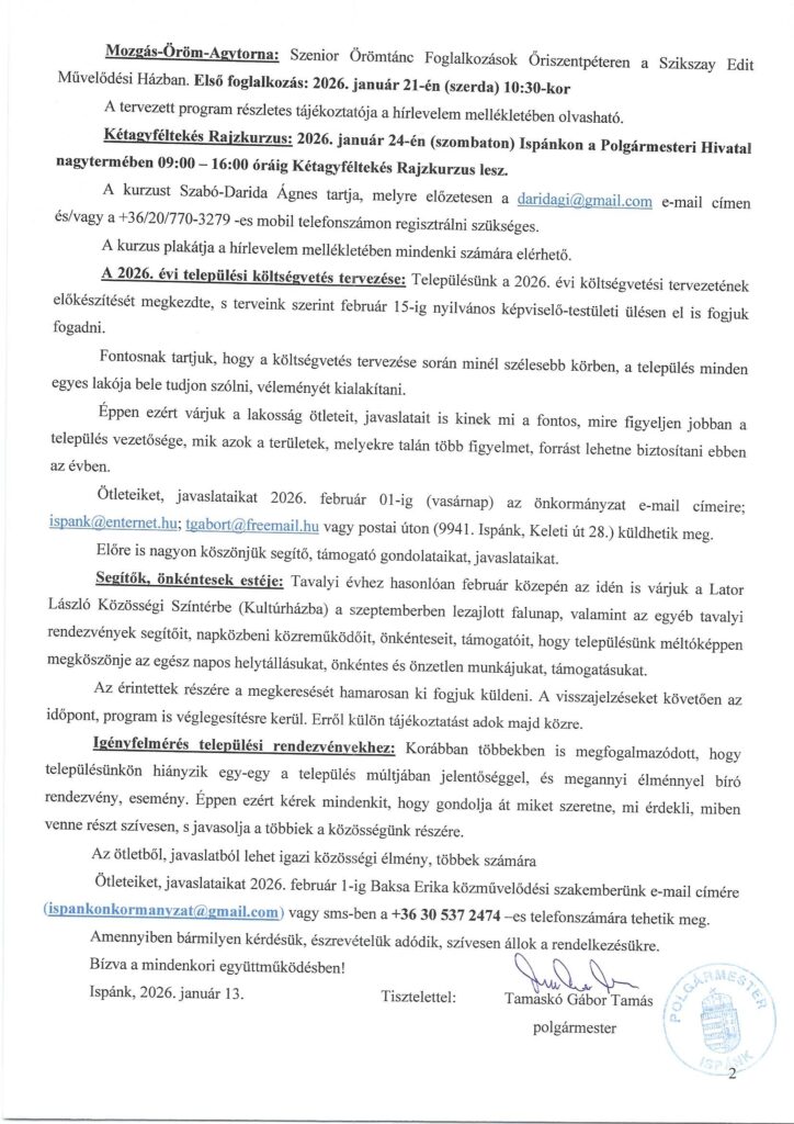 Polgármesteri Hírlevél
